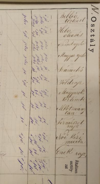 Архив града Новог Сада чува дневнике са именима ђака Јеврејске школе, као и вишедеценијску преписку везану за њен рад. Из ове документације се веома мало сазнаје о музичком образовању и васпитању у Јеврејској школи, али се могу маркирати оквири музичке наставе сведене на певање (мађ. Ének). Оно је на нивоу школског предмета некад увезано с цртањем (мађ. Rajz), а некад са – гимнастиком (мађ. Тorna). Из приложеног фрагмента једног од сачуваних дневника види се да је предмет „Певање и цртање“ (мађ. Ének rajz) последњи у низу. Певање се, притом, учило само у трећем и четвртом разреду у овом периоду рада школе.