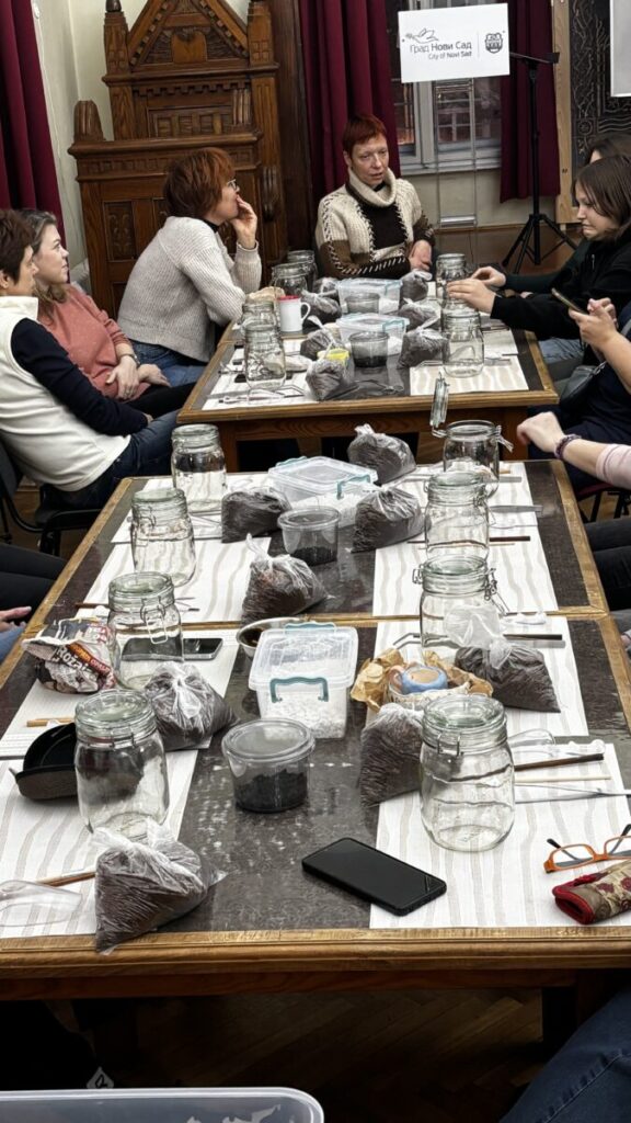Pod vođstvom Damira, koji nam je održao izuzetno zanimljivu, inspirativnu i edukativnu radionicu, zaronile smo u svet biljaka, prirodnih materijala i malih zelenih ekosistema koji žive sami od sebe. Način na koji je Damir prenosio svoje znanje, strpljenje i ljubav prema ovoj temi ostavio je snažan utisak na sve prisutne. Podelio je sa nama svoje znanje, iskustvo, trikove i ljubav prema ovoj temi, učinio je da svaka učesnica stekne neke nove veštine i sa lakoćom kreira svoj terarijum.